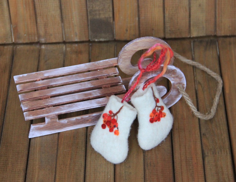 У своей соседки Анастасии приобрела такой вот набор елочных игрушек из холодного фарфора, все уже на елочке)) и сову из фетра, имя мастера не знаю, да простит она меня.