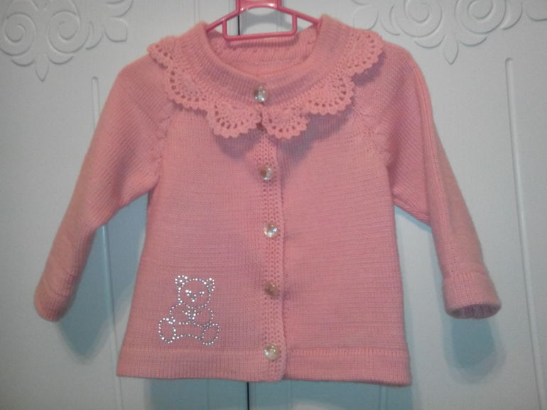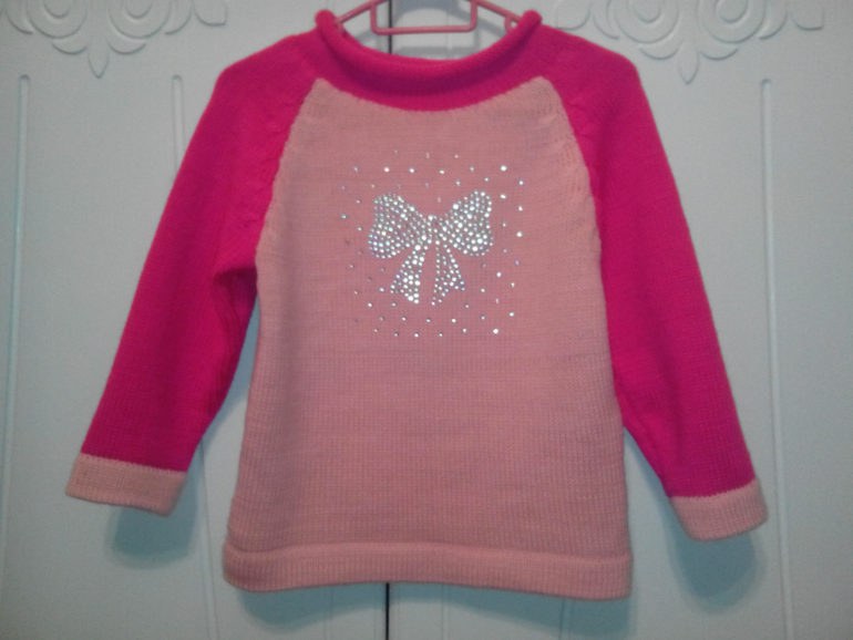 Вот они - ее первые работы. Выкройки и стразы мои ( потому кофточки похожи на мои), а вязала все моя Фая! 2 кофточки - 3 фото