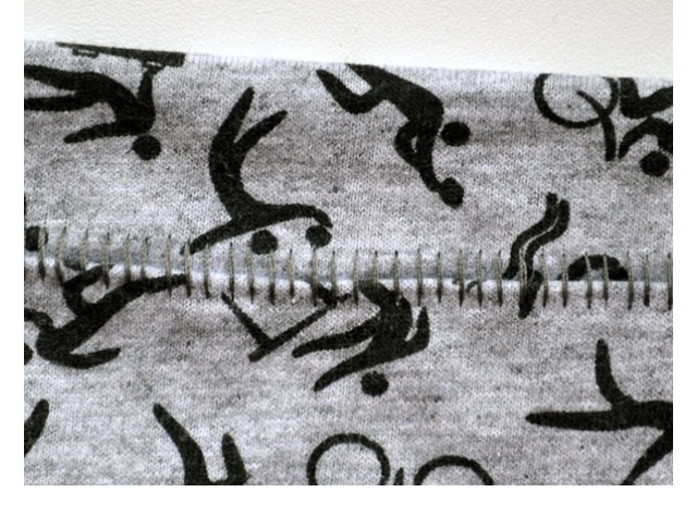 Прошиваю обработанный оверлоком шов зигзагом, но хитро подгибаю, с лица видно только вертикальные стежки.