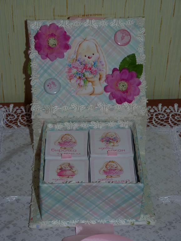 СкрапбукингЗдравствуйте, рукодельницы. Сотворилась коробочка "мамины сокровища" для девочек, увлеклась скрапом совсем недавно, поэтому, строго не судите , да и качество фото....уж простите. В реале она смотрится намного лучше, я результатом, в принципе, довольна. Под катом 5 фото.