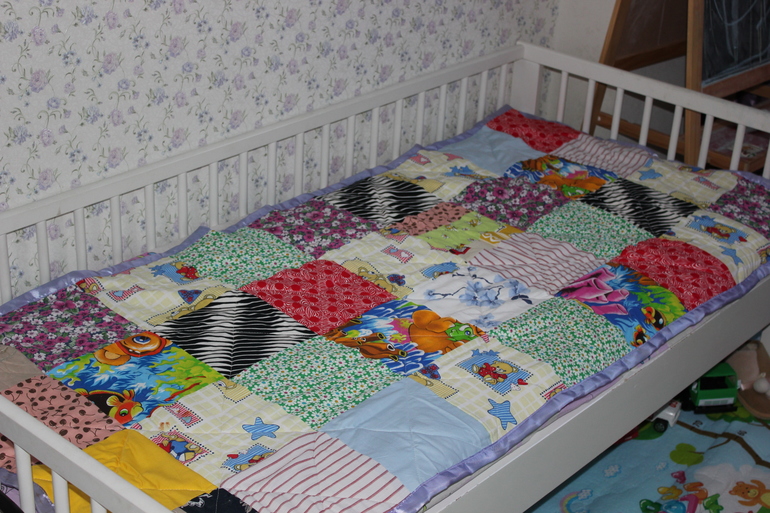 Плед для детской кроватки (точнее для Танюшки) сшит из остатков хлопковых тканей.