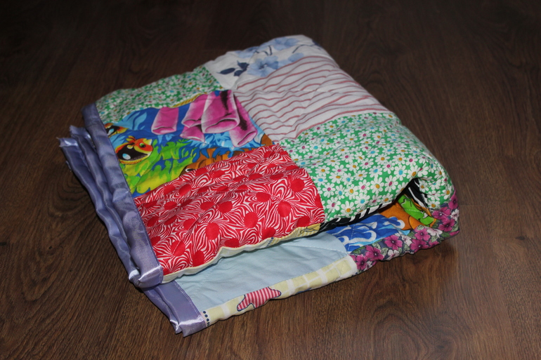 На изнанке бельевая бязь. Простегала все квадратики по диагонали.