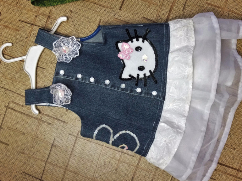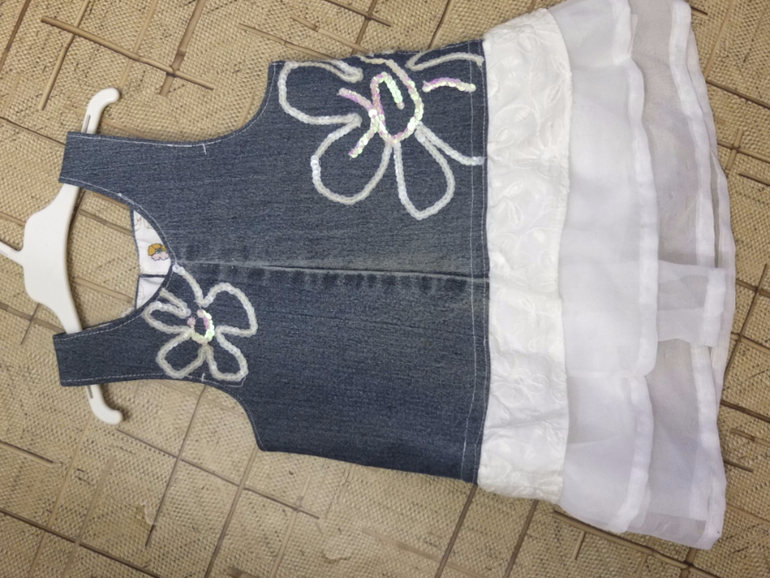 Потом в ход пошли мои старые джинсы клеш. Причем верх джинсов я носила)) сделала рваные капри. Низ пошел на сарафан.