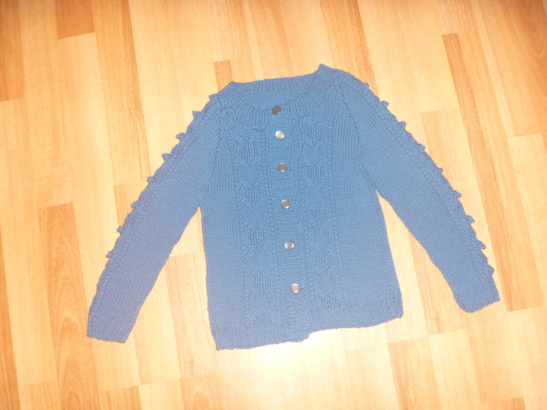 Связался вот такой кардиганчик на 4-5 лет. Пряжа Троицкая "Моя беби". Ушло почти 5 моточков.