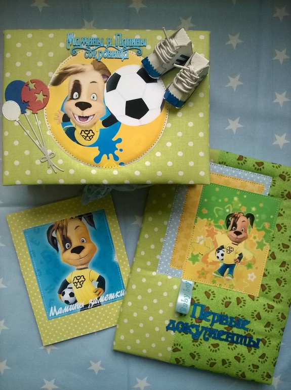 СкрапбукингНа прошлой неделя сделала вот такой подарок малышу который скоро скоро родится, папа у него футболист и тему подарочка выбирал сам))