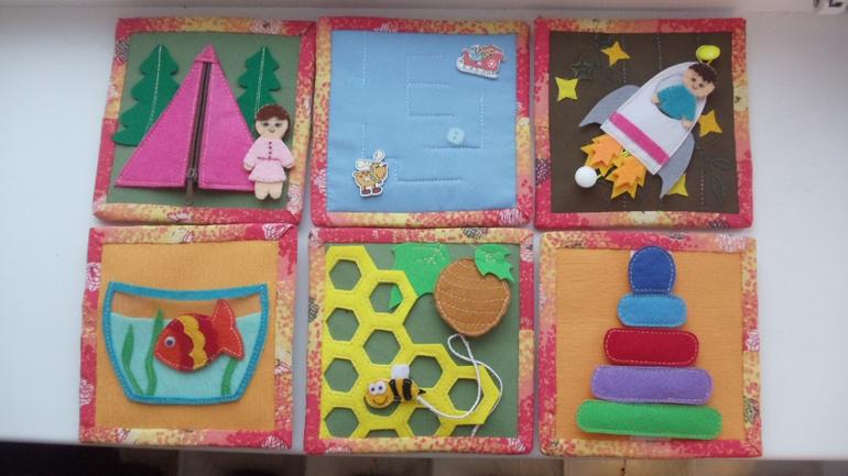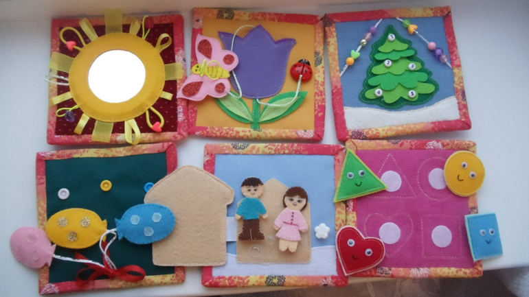 Развивающие игрушкиВот такие развивающие карточки получились у меня вместо сборного кубика. А все лень новогодняя) Но и так симпатично получилось . Размер карточек 13*13. Они двусторонние. Хранятся в сумочке. очень удобно. Все развивающие элементы присутствуют)
