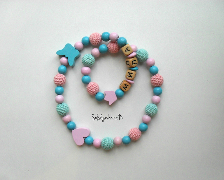 Бижутерия для слингомам. Слингобусы. Грызунки.Для маленького нежного создания связались а затем и собрались такие же нежные бусики. Фурнитура, пряжа - Европа.