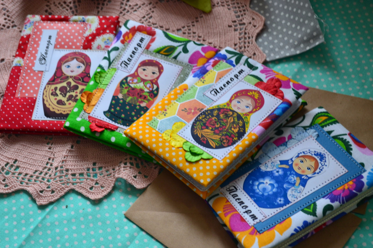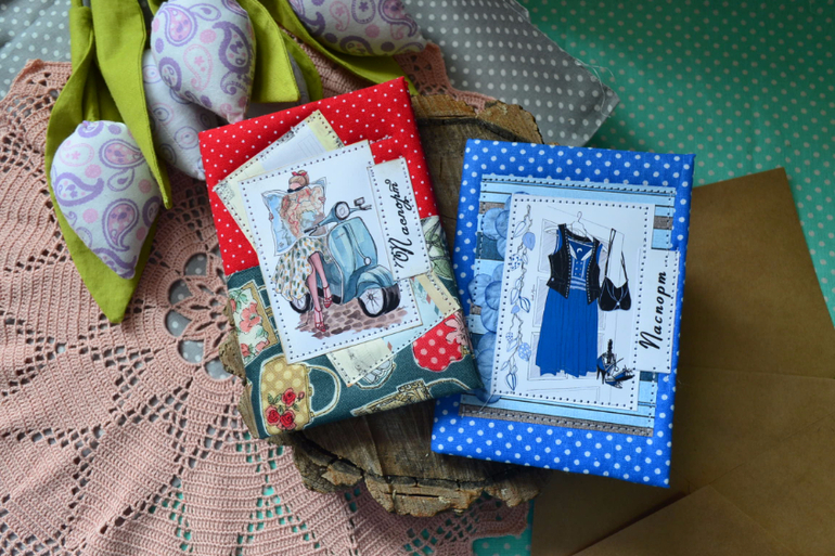 СкрапбукингДевочки приветик!ау меня после Новогодних праздников-сделались обложки для паспортов- перебрала свои ткани и утилизирую кусочки маленькие)))