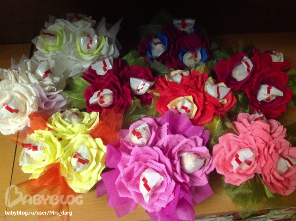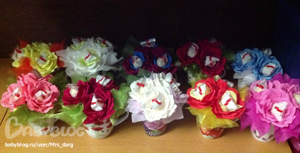Букеты из конфет. Свитдизайн.В этом году поздравили почти всех работников ДС:))