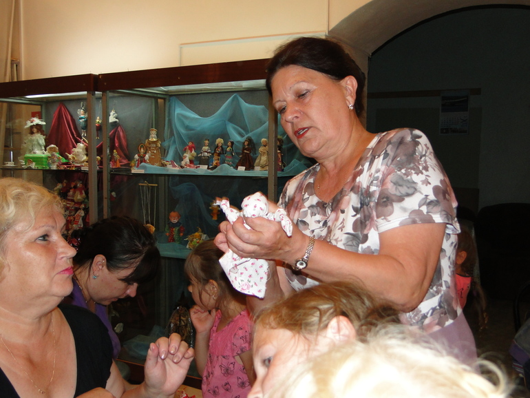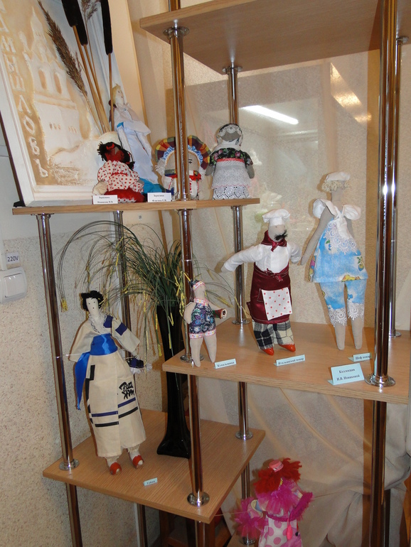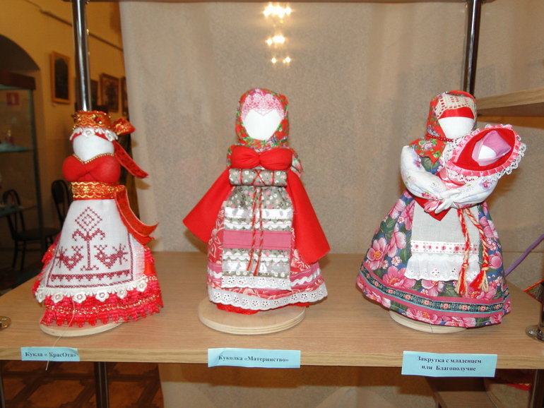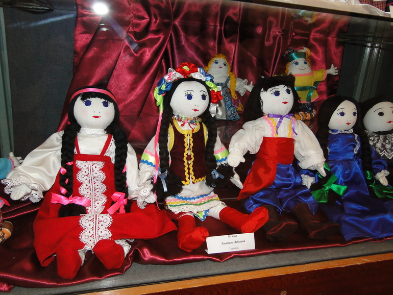 Рукодельные выставки, встречи рукодельниц в реале, отчеты с МК (не платных)Недавно в нашем городском музее открылась выставка кукол. Моя мама принимала активное участие, т.к. выставляла свои работы и проводила мастер-класс по изготовлению кукол-пеленашки и куватки.