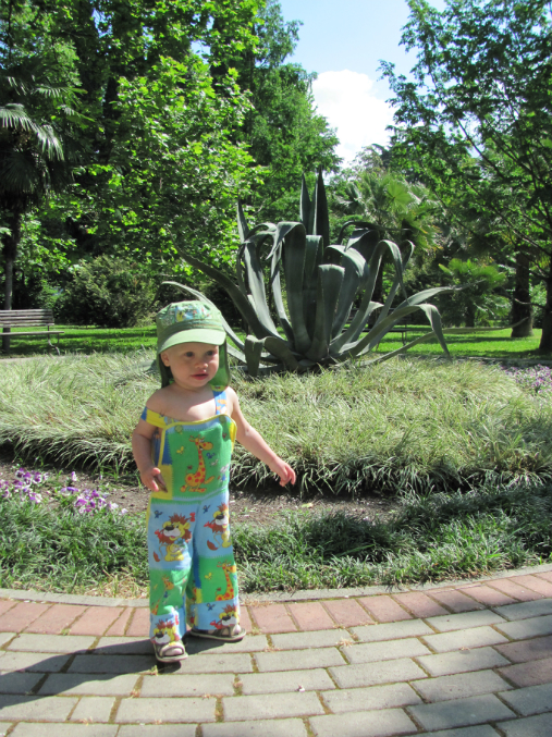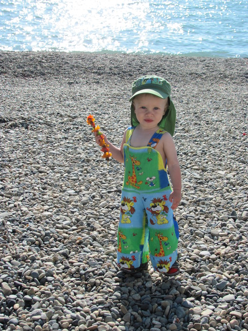 Перед выездом на море сшила сынишке комбезик. Наш папа любит жирафов и ткань выбирал он. К нему еще есть рубашка, но фото нет.