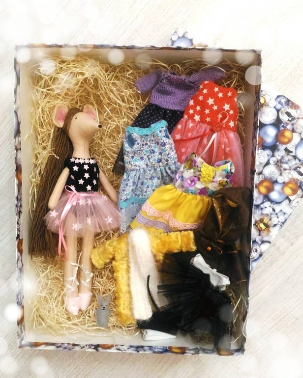 Перед новым годом я поработала помощником Деда Мороза для одной чудесной девочки. Мышка около 35см, лапки подвижные. Одним из желаний были длинные волосы, как же я противилась этому, но в итоге осталась очень и очень довольна, сама не ожидала, что так здорово получится)) Мышка занимается балетом и гимнастикой.