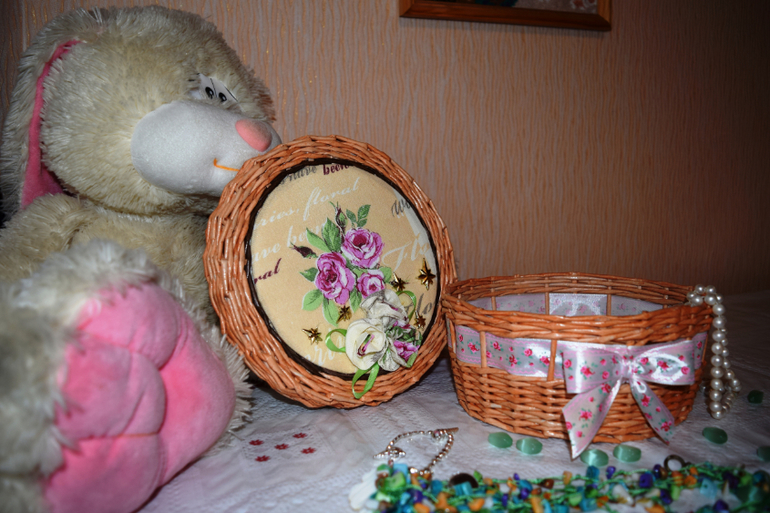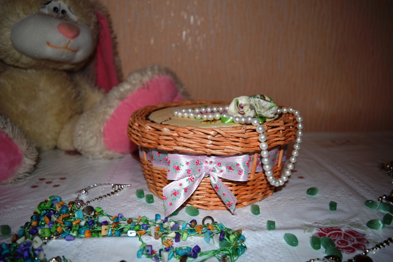 Изделия из бумаги, папье-маше, квиллинг.Девочки, оцените мою с дочей работу. Планировали плести младшему короб для игрушек, а получилась шкатулка. А потом ещё одна )))Я плела, а дочь делала украшения: розочки и бантики.