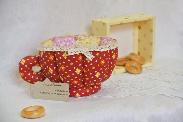 Шитье одежды, выкройки, ремонт одежды, шторы, швейные машины (уже приобретенные)Чайник уже был. Я захотела сшить чашку. Нагуглила 2(!!!) МК, оба мне не понравились, и сочинила собственную выкройку. Конечно, все они похожи, но эта - МОЯ! Здоровая такая конфетница получилась, 14 см в диаметре.