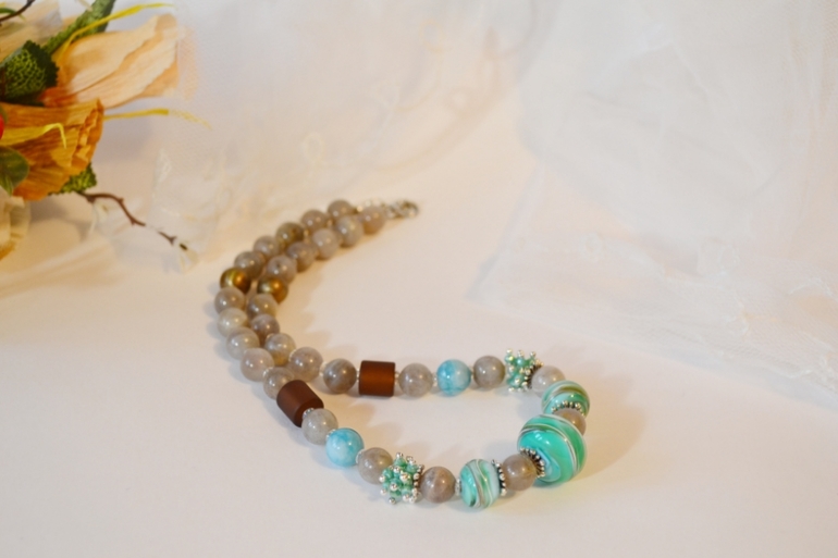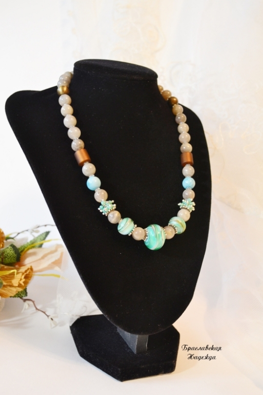 Бижутерия для слингомам. Слингобусы. Грызунки.Всем рукодельницам и любителям ручной работы доброго дня! Очень давно не заходила, столько красоты вижу!!! Добавлю от себя ещё немного. Бусы "Абсент" с необычным, "дурманящим" сочетанием цветов: серый спектролит, голубой агат, коричневый и медный, бирюзово-голубой и в центре волшебные бусины лэмпворк ручной работы.