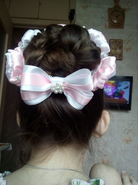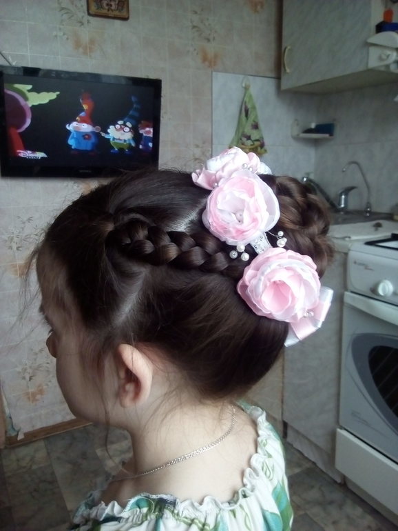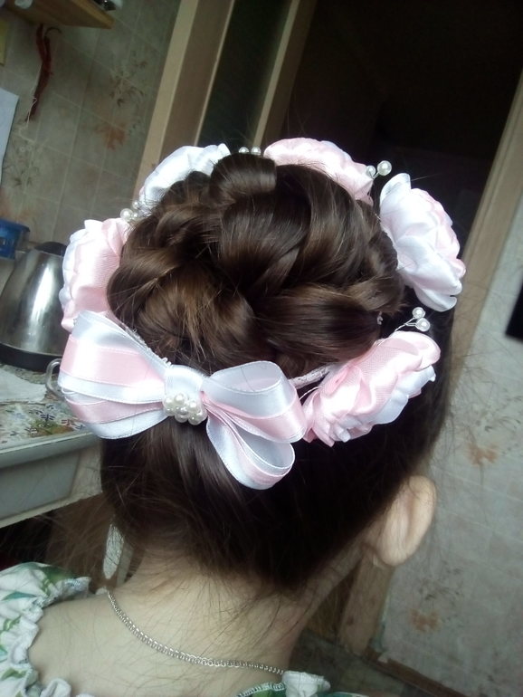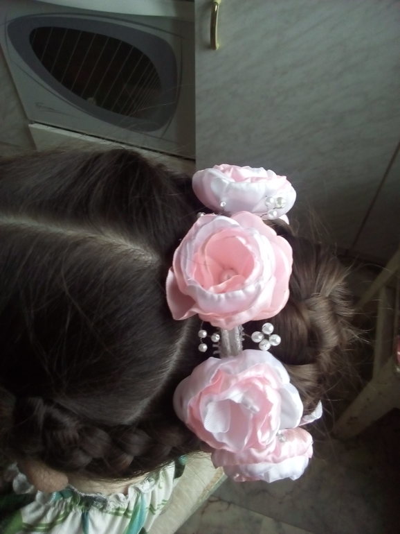 Цветы из ткани и форма. Канзаши. Украшения для волос.Косяков множество, следующую буду делать с учетом промахов. Пучок крутила наспех, чтоб было на что надеть.