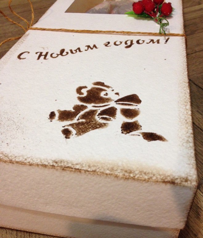 Подарочная коробка из плотной бумаги, наполнитель - древесная шерсть