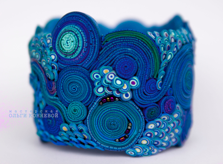 Лепка из пластики (полимерная глина) (ТОЛЬКО ГОТОВЫЕ РАБОТЫ)Браслет "Нереида" (Морская нимфа).Авторская ручная работа из полимерной глины. Фотография не передаёт всех оттенков к сожалению( Зелёного в браслете нет, есть изумрудный. И к сожалению совсем не видно других оттенков синего и фиолетового. Попробую завтра переснять, но показать уже не терпится)