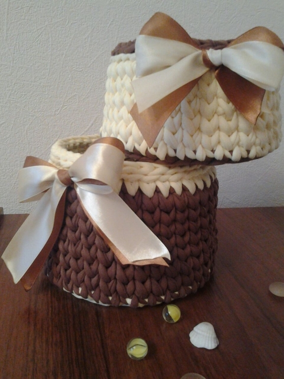 А тут случайно в интернете наткнулось на изделия из пряжи-ленты. Корзинки , ковры а какие сумочки из нее вяжут. Ну вот и теперь я "подсела " на ленту.