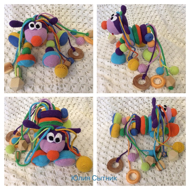 Амигуруми (вязаные игрушки)С рождением малышки потянуло меня на вязание развивающих игрушек. Представляю нашу первую развивашку! Лошарик связан из хлопка, бусины можжевеловые.