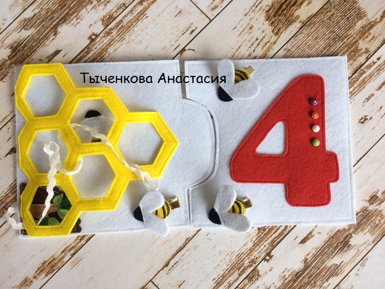Чифра четыре и лабиринт из пчелок. Три пчелки снимаются как заколочки, а одна - летает в лабиринте из сот. Она не съемная.