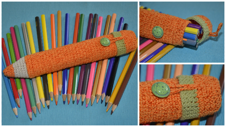 Кончик карандаша слегка набивается и делается донышко, т.е отточенные карандашики упираются в мягкое. Крышечка мягкая (сзади пришивается), одевать удобно. Вязала крючком 1,5 чтобы поплотнее вышло.