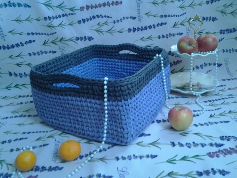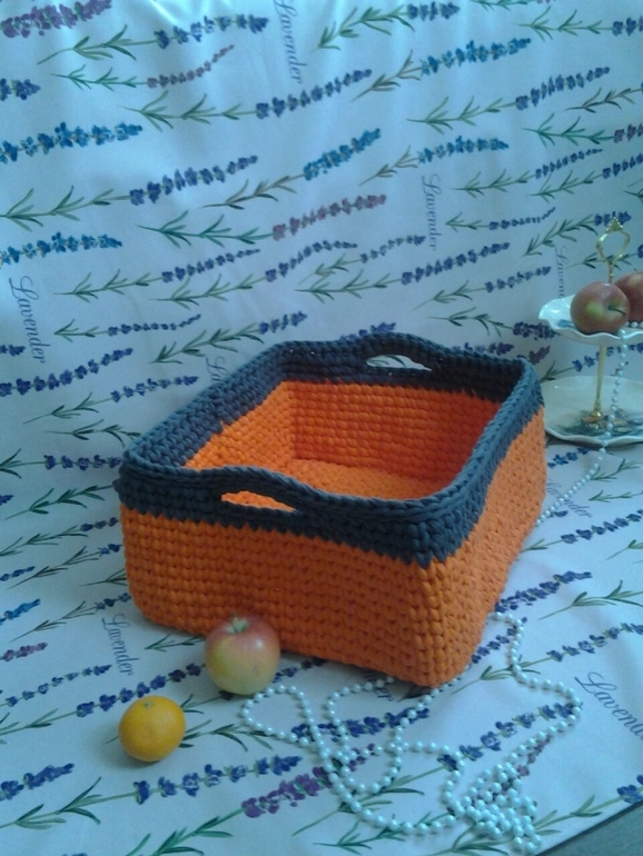 Вязались корзинки крючком 10мм, нитки хлопок. Сочетание выбрано по желанию .