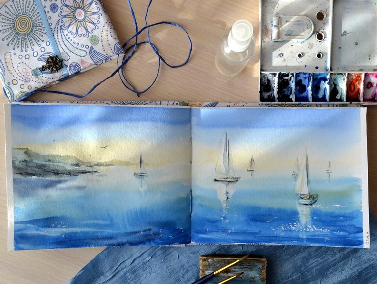 Видео мастер-класс: морская зарисовка акварелью в скетчбуке.