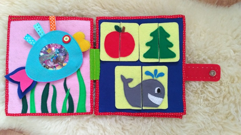 На втором развороте рыбка-искалочка (на липучке) и пазлы: