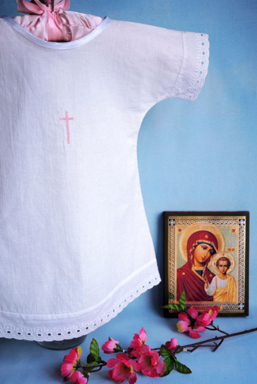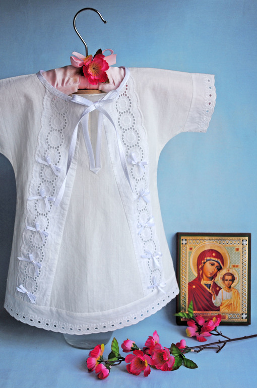 Насмотрелась я тут на всякие крестильные принадлежности. Красота, белизна, рюшечки, кружавчики. Особенно балдею от машинной вышивки. Вышивальную машину поставила себе в хотелки, кучерявые они по цене, пока не решусь. Однако загорелась желанием попробовать сшить платьице, хотя малышек пока в ближайшей перспективе не предвидится. Ну и пусть, охотку же надо сбить. Вот и сшила я крестильную нежнятинку, даже крестик на спинке вышила и бантиков с бусинками наваяла (на фото бусинки плохо видно).