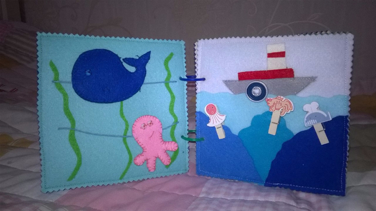 кит и осьминог могут "плавать", кораблик вытаскивается, а морские жители на прищепках