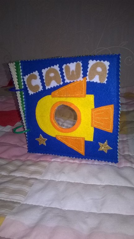 Книжка 15х15 см, обложка с ракетой, а в ней безопасное зеркало