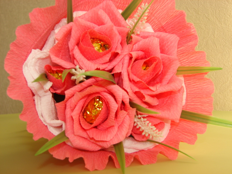 Букеты из конфет. Свитдизайн.Девочки, всем привет! В качестве небольшого презента сделала такой букетик. Комментарии, критика и советы приветствуются.