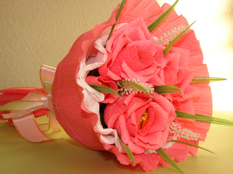 Девочки, всем привет! В качестве небольшого презента сделала такой букетик. Комментарии, критика и советы приветствуются.
