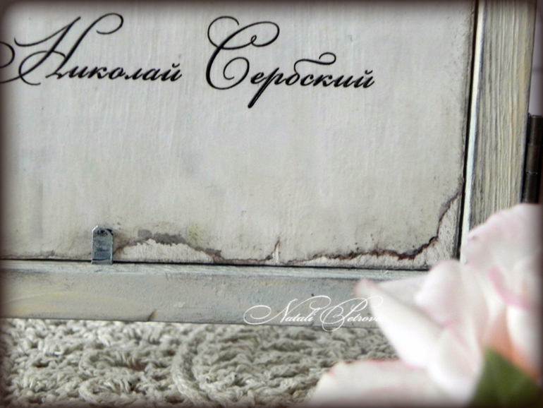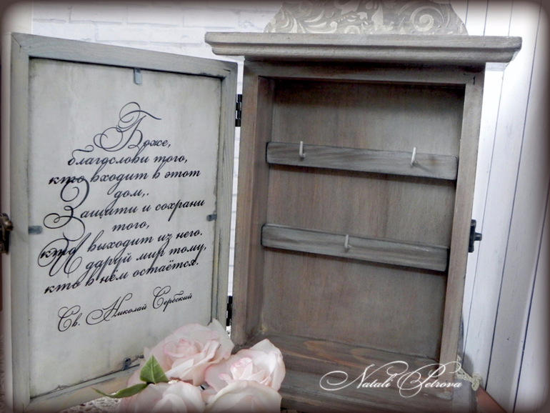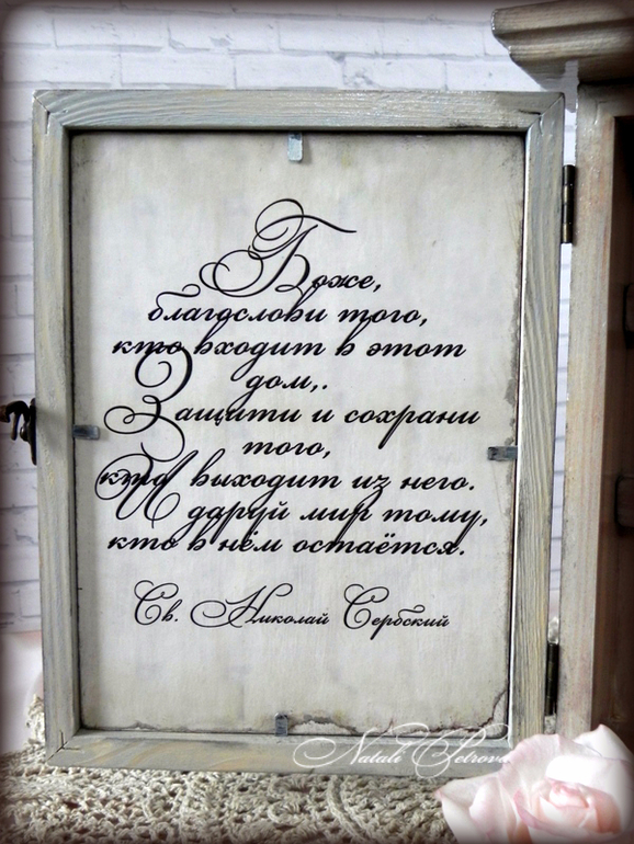 Внутренняя часть дверки содержит молитву св. Николая Сербского. При желании розу можно поменять местами с молитвой.