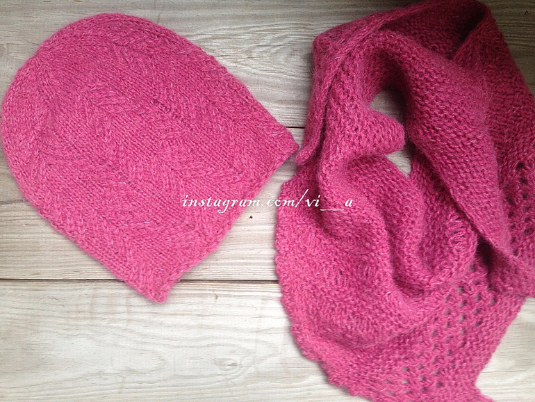 Вязание спицамисочного ягодного цвета шапка и платочек. В составе альпака и шелк, мягкий как котенок. Пусть весна будет яркой
