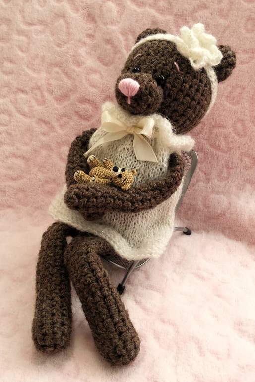 Вязала из полушерсти. Узнала новый метод вязания. Мишка получилась очень мягкая.