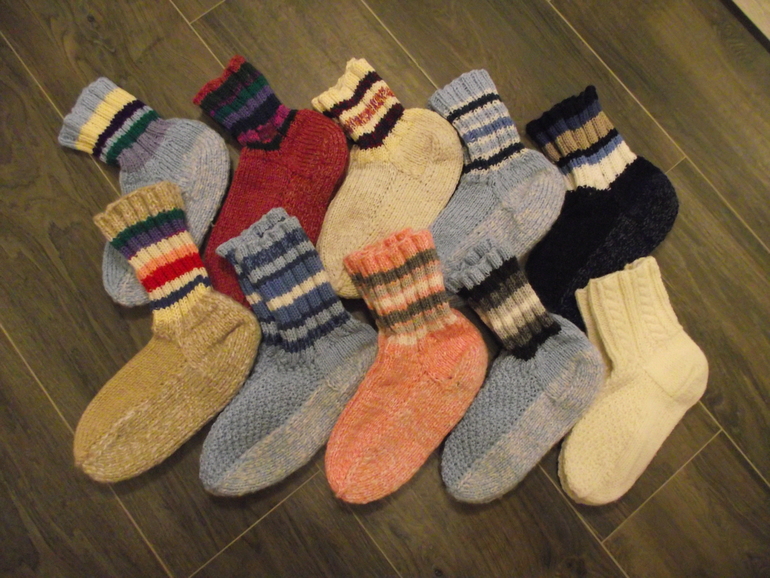 долгими зимними вечерами навязалась куча носков,так сказать ликвидация остатков.Хорошо что есть кому их раздавать ( да и пользуются спросом), куча родственников живущих в частных домах.Да и в квартире люблю носить носочки,тапки не признаем)