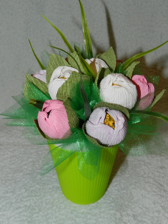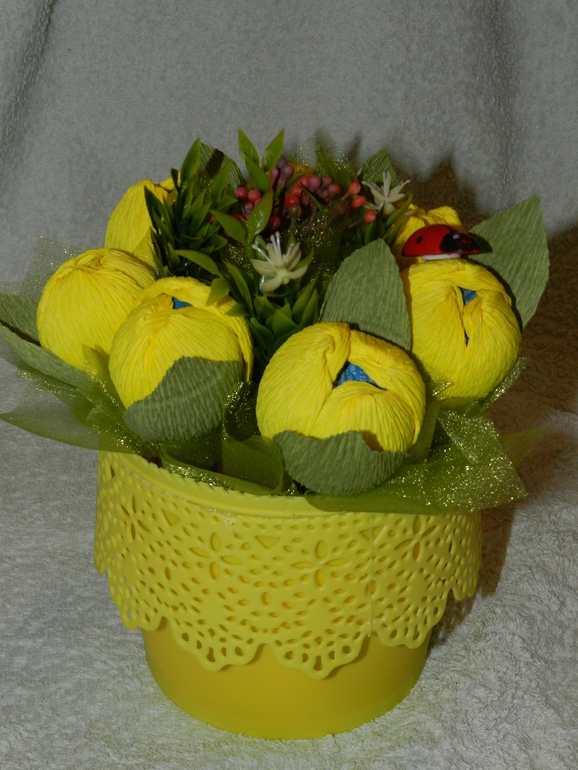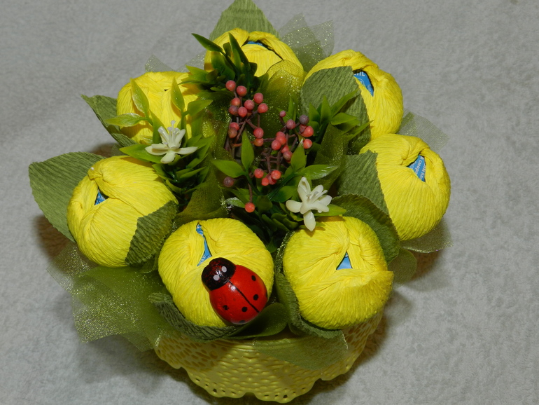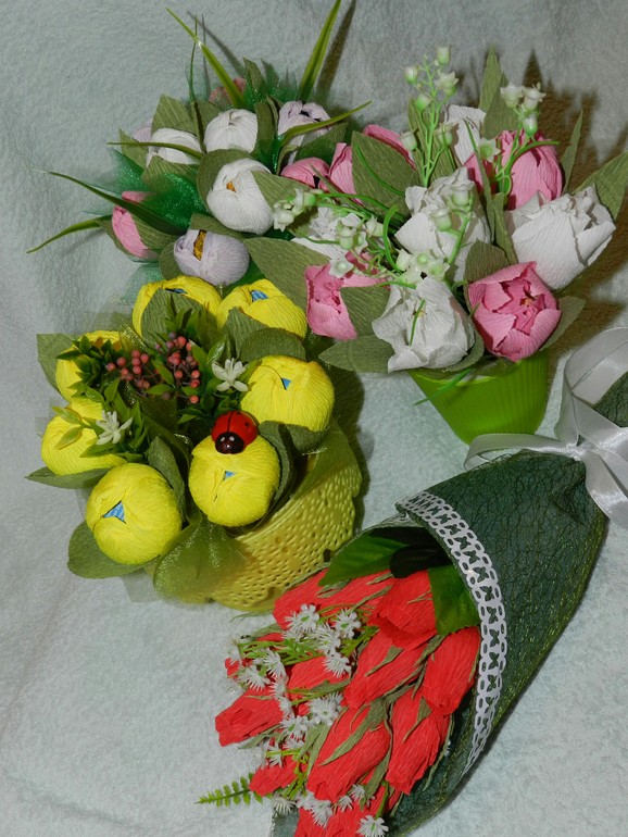 Букеты из конфет. Свитдизайн.Здравствуйте, дорогие рукодельницы))) учла ваши предыдущие замечания по поводу желтого букета и переделала его полностью... И еще сотворилось немножко))) оцените пожалуйста)))