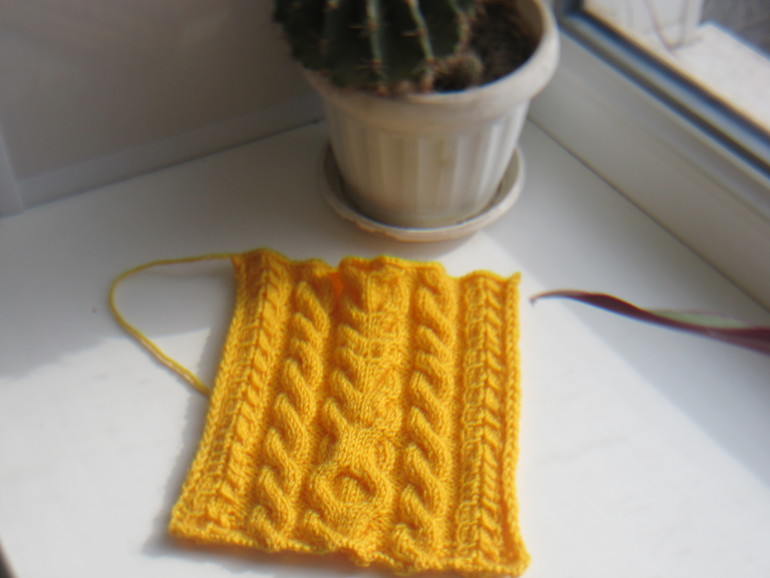 И спинки образец вяжите тоже. Потом их оба постирайте, сделайте тепловую обработку, в общем всё, что будете потом с готовым свитером делать, и измерьте. Я часто ленюсь вязать образцы, поэтому привязывать вообще все приходится))