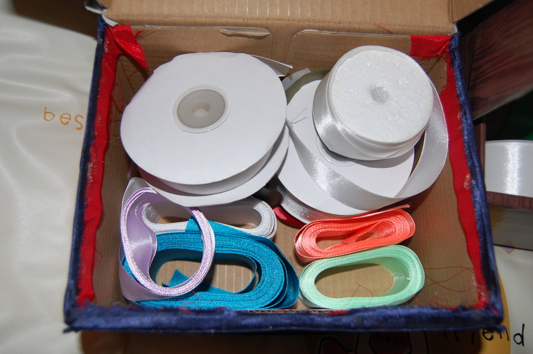 В магазинах для рукоделия зайдите, там есть разные шкатулочки для хранения, может для ленточек найдете что-то удобное.