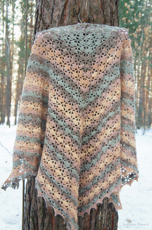 Вязание крючком (РАБОТЫ И СХЕМЫ)Всем добрый весенний день. У нас на Урал пришла настоящая весна. За окошком +7. А в лесу какая красота!!!!!!!! Подоспела новая шаль.Сбилась, какая по счёту шаль по этой схемке. Очень её люблю, вяжется на одном дыхании.