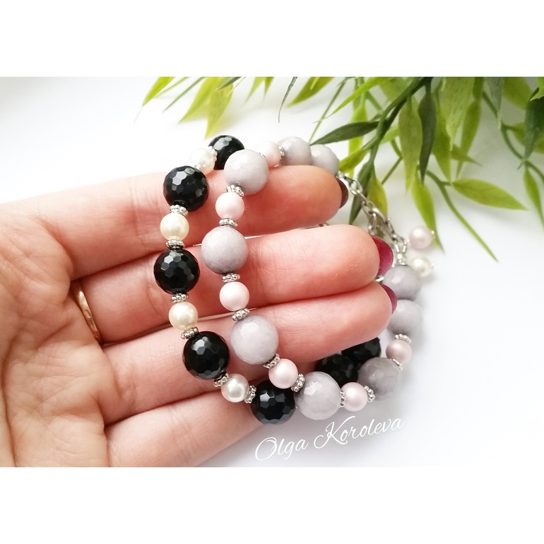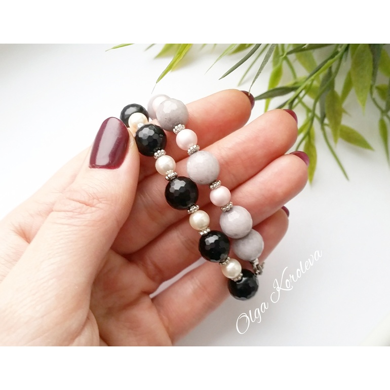 Бижутерия для слингомам. Слингобусы. Грызунки.Давно не делала браслеты на ювелирном тросике, хотя очень люблю процесс сборки. Черный агат с огранкой, тонированый серый агат, кристальный жемчуг Сваровски кремового и розового цвета. Размер регулируется цепочкой-удлинителем. Теперь руки чешутся к ним бусы сделать. Весенний творческий зуд какой-то😂 А вы, рукодельницы, уже испытали весенний творческий подьем?