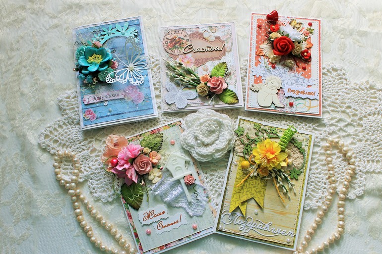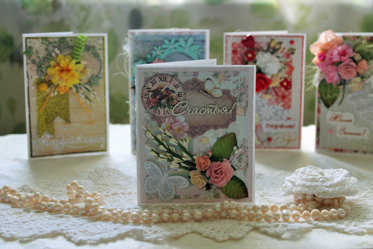 Вдохновил меня один марафон открыток, захотелось сделать что-то новое и вот они - мои первые открытки!