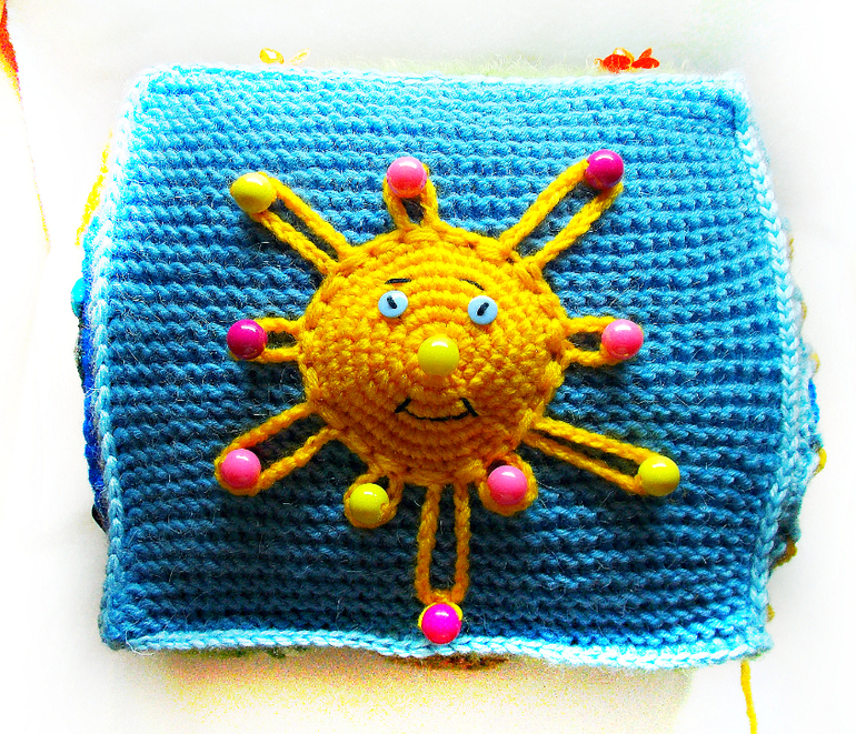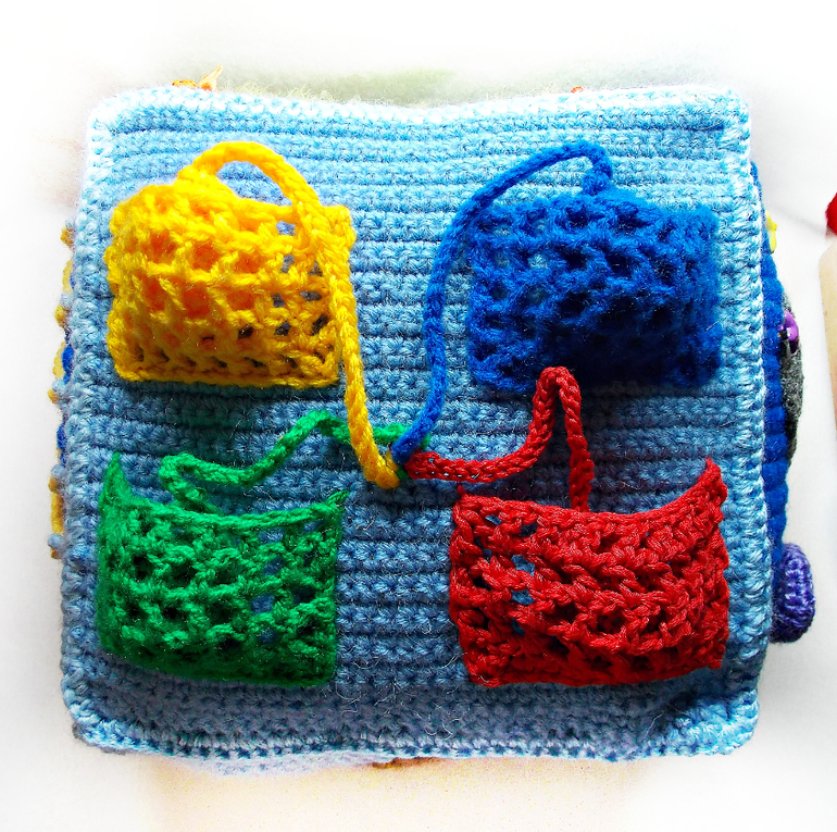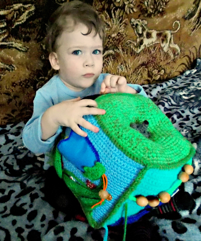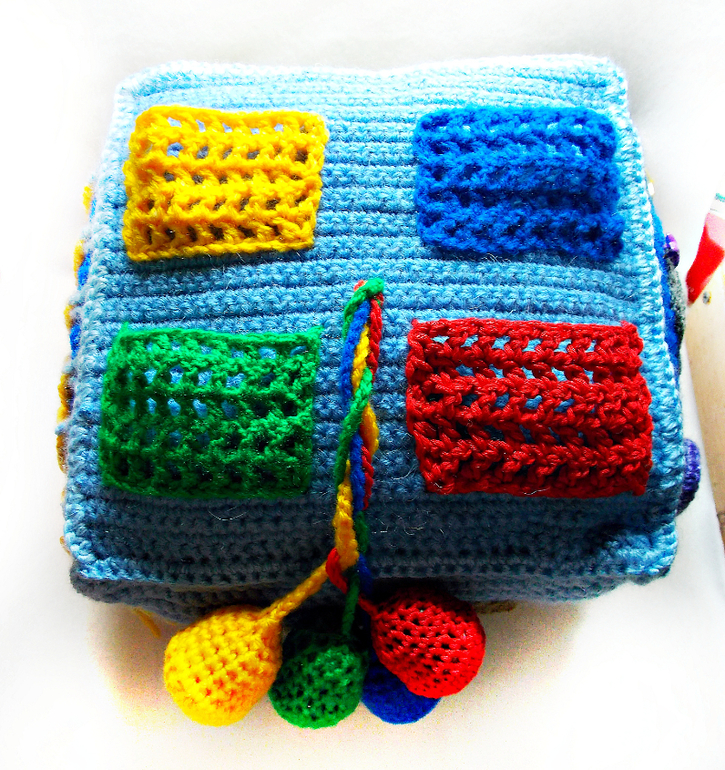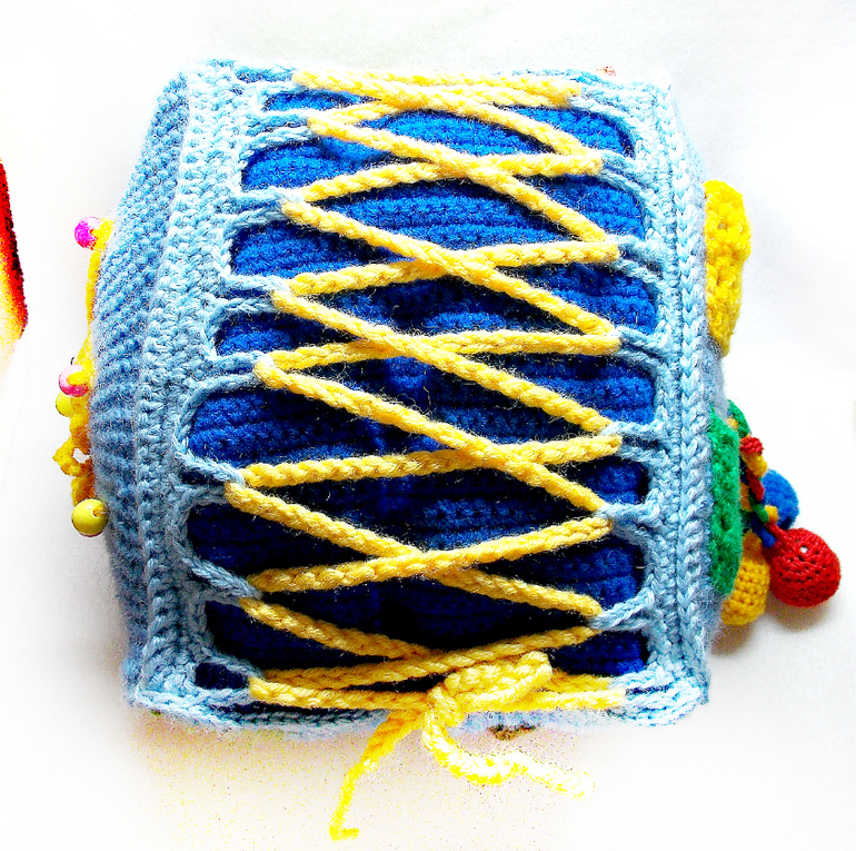 Развивающие игрушкиЗакончила вязать новый кубик. Грани 20х20. Связаны спицами и крючком.