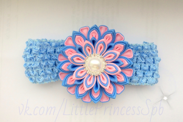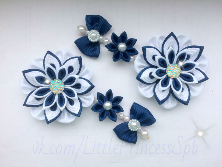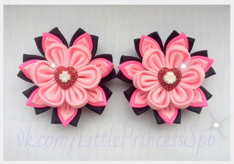 Делала без МК, тут обычные лепесточки для цветка-звездочки, как на этой инструкции http://kollekcija.com/tsvetok-zvezdochka-svoimi-rukami-master-klass-alenyi-tomilovoy/. Только размер лент разный - 2,5 и 4 см шириной. Длина лент примерно 5-8 см.