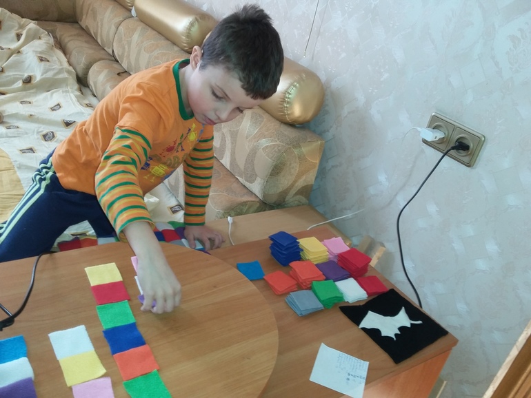 Вовик выкладывал мне полоски из квадратиков нужных цветов: