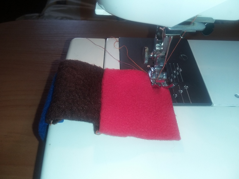 Наложить выкройку, скрепить булавками, прошить от хвостика до середины груди: