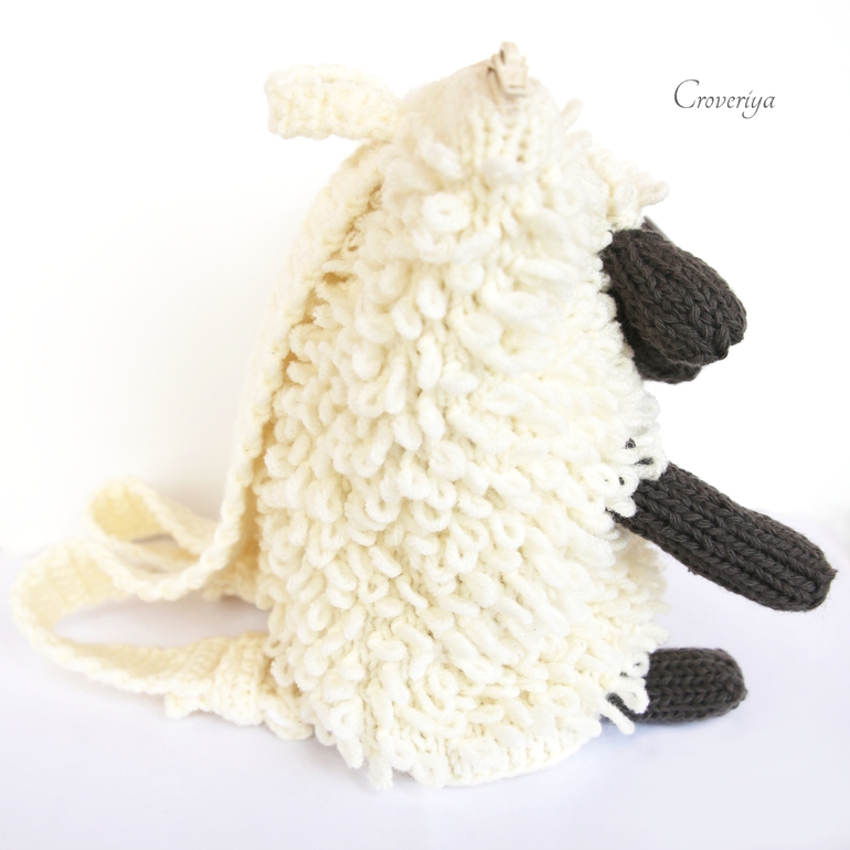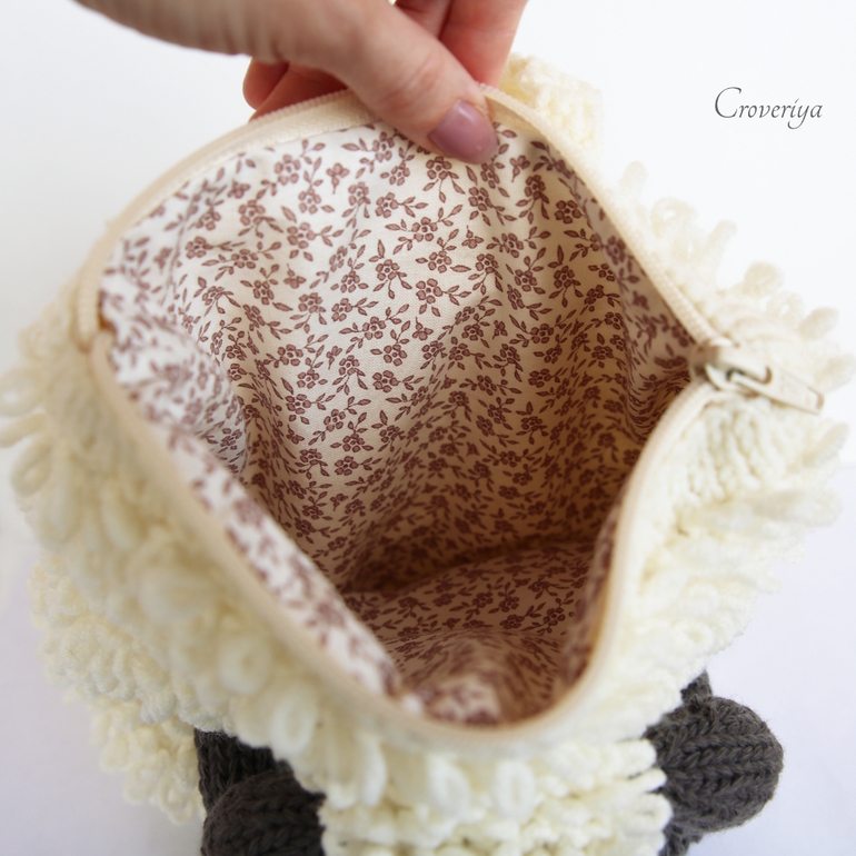 Вместо завязок рюкзачок закрывается на молнию (так на мой взгляд удобнее, девочки любят всякие мелочи в сумочки класть), по-другому сделала выкройку подкладки, лямочки рюкзачка можно отрегулировать. И в дополнение связала ручку.