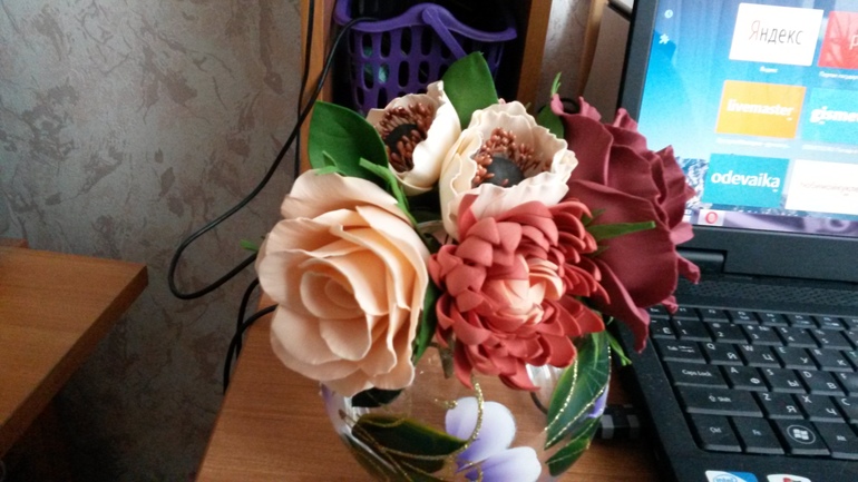 Времени бы побольше ну и материальных вложений... Вот такие букетики родились на подарки к 8 марту учителям в школу.